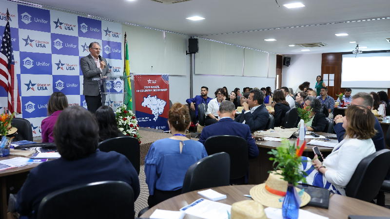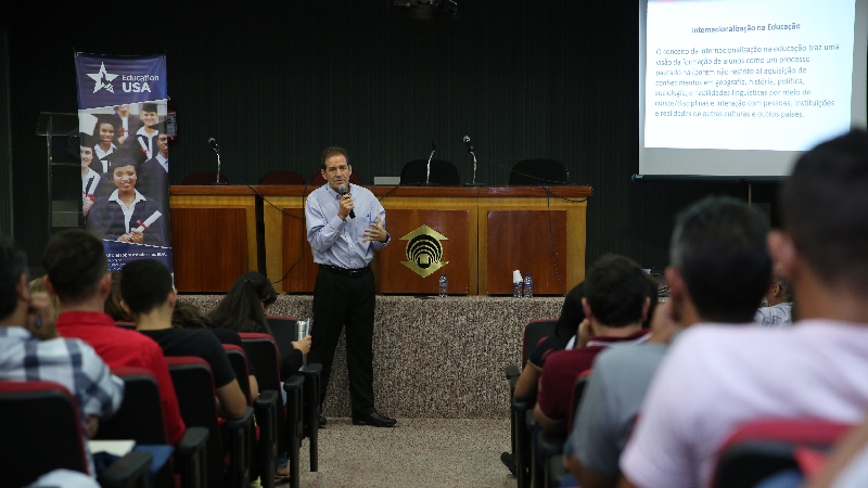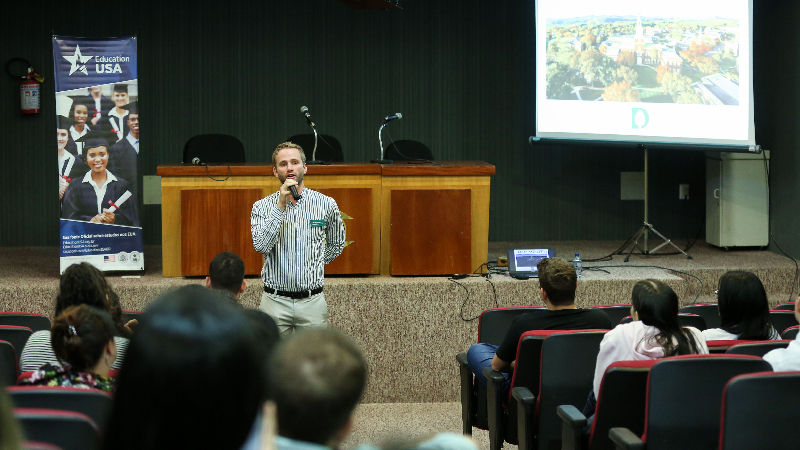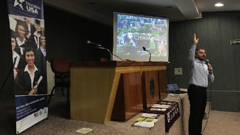 Sessão Informativa em parceria com o Fortaleza Bilíngue, na qual foram apresentadas as diversas oportunidades educacionais disponíveis nos Estados Unidos, assim como os serviços ofertados pelo escritório EducationUSA/Unifor e pelo NEI.
