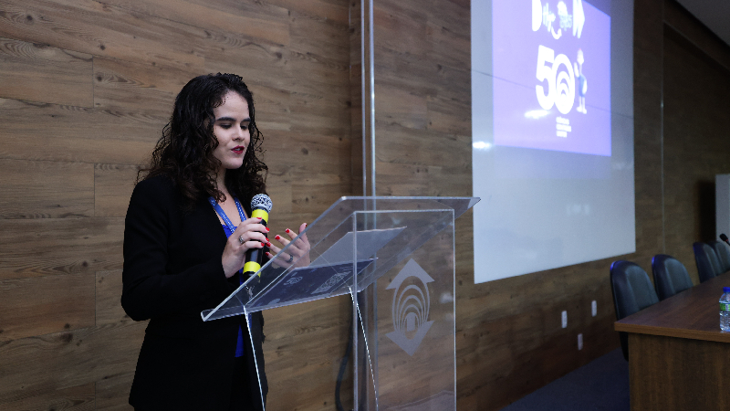 Alexandra Siebra, coordenadora do curso de Ciências Contábeis — “Estamos completando 50 anos, é uma trajetória longa e bem-sucedida com egressos que estão trabalhando nas esferas públicas e privadas. Hoje, a gente celebra na companhia de grandes profissionais e dos nossos estudantes. O objetivo é compartilhar aprendizados com os nossos alunos”.