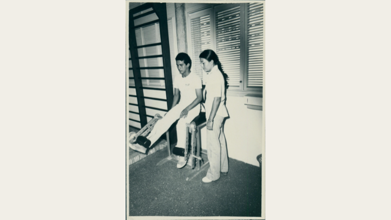Atleta de vôlei, ela considerava cursar medicina, mas não queria abrir mão do tempo que dedicava ao esporte — pelo qual também era apaixonada — para estudar exclusivamente à concorrida graduação. Motivada pela família, decidiu então ingressar na terceira turma de Fisioterapia da Unifor, em 1975. “Fui despreocupada, sem cobrança. Já tinha lido tudo sobre fisioterapia e tinha gostado”, conta.