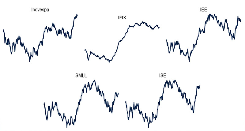 Nos mercados, outubro registrou a continuidade do movimento de valorização. O Ibovespa (+2,3%) avançou, alinhado com o sentimento otimista nas bolsas globais, e o Dólar (+0,9%) registrou leve alta frente ao Real.