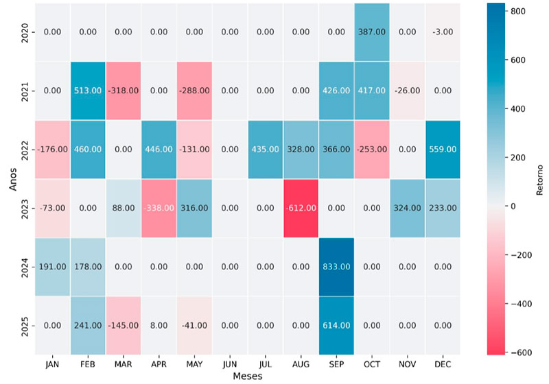 Os alunos de graduação dos cursos de Ciências Econômicas, Finanças e pós-graduação em Ciência de Dados da Universidade de Fortaleza (Unifor), aplicaram um algoritmo de Busca Exaustiva para otimizar essa estratégia, testando todas as combinações possíveis de médias móveis. A eficácia das combinações foi validada por meio de backtesting em Python, com comparações paralelas na plataforma Profitchart Pro. Cada ativo financeiro foi submetido a uma customização específica de médias móveis, com a otimização focada em maximizar a relação entre retorno, risco e a probabilidade de sucesso das operações.