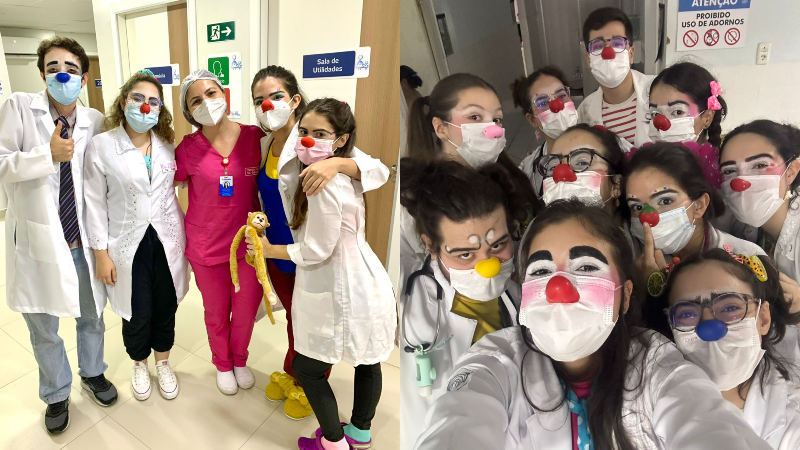 A aluna conta que, juntamente com os colegas, fez um curso de capacitação que os habilitou a visitar hospitais como palhaçoterapeutas. “Somos doutores-palhaços, especialistas em diminuir a dor e o estresse dos pacientes nos hospitais. Lidamos com um dos momentos mais sensíveis que o ser humano passa, então é levado bastante a sério”, enfatiza.