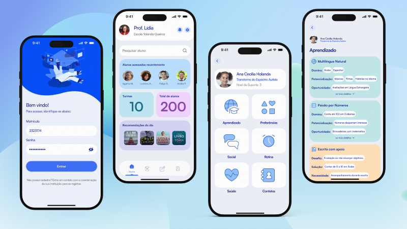 O projeto Edu+ foi desenvolvido durante a disciplina de Design Research, a partir de um campo de estudo concreto: a Escola de Aplicação Yolanda de Queiroz. Janaina explica que a proposta surgiu a partir das demandas reais da comunidade escolar. “A partir de dificuldades relatadas por agentes de inclusão, pelos docentes e pela coordenação pedagógica, procuramos explorar maneiras de auxiliar esses profissionais com o acolhimento do crescente número de diagnósticos de diversas neurodivergências”, relata.