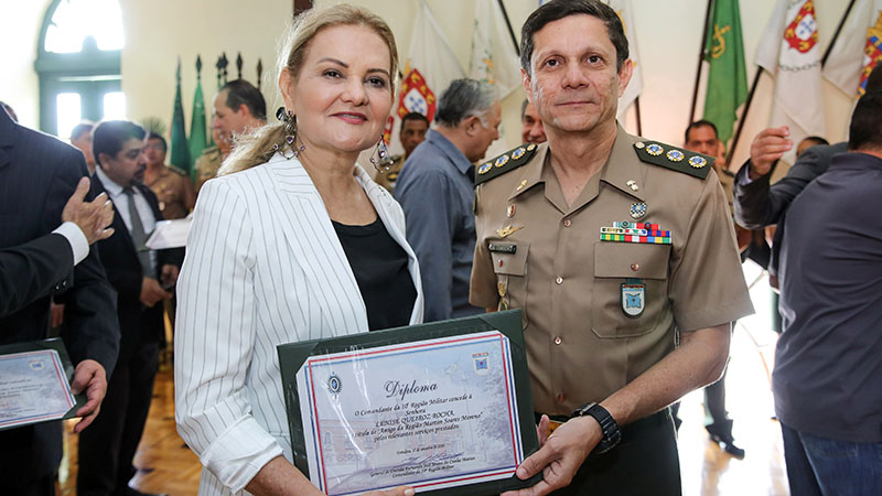 A presidente da Fundação Edson Queiroz, Lenise Queiroz Rocha, recebeu, neste dia 17 de setembro, o Diploma de Amiga da 10ª Região Militar. A outorga aconteceu na cerimônia do 76º aniversário de criação do Comando Militar. De acordo com o Assessor Parlamentar da 10ª Região Militar, coronel Luiz Benício, são homenageados personalidades e instituições pelos serviços prestados ao Exército brasileiro.