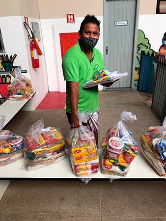 “Esse momento da entrega das cestas e do material didático é muito importante para todos nós que fazemos parte da Escola de Aplicação Yolanda Queiroz, porque conseguimos, de alguma forma, dar continuidade e garantir o processo de ensino e aprendizagem”, compartilha a professora Mônica Galeão, diretora da instituição.