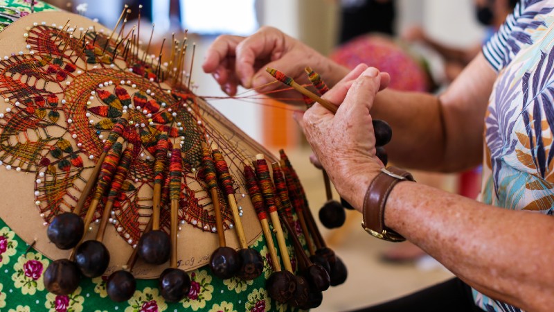 “É muito gratificante saber que houve uma troca de experiência entre o aluno e a rendeira, eles chegaram com uma bagagem e convivendo com a gente, isso enriqueceu”, reforça dona Eliane, rendeira da Prainha que também integra o projeto.