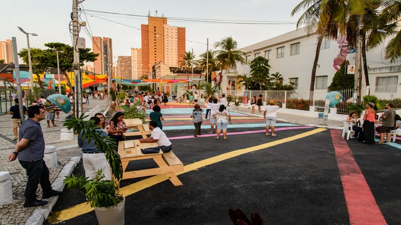 Neste mês de Agosto, o projeto “Cidade da Gente” transformou a área próxima ao Centro Dragão do Mar de Arte e Cultura, na rua Almirante Jaceguai. A intervenção é da Prefeitura de Fortaleza com apoio da Iniciativa Bloomberg de Segurança Viária e a ideia é incentivar novas maneiras de ocupar o espaço por diferentes públicos, priorizando o pedestre e usuários vulneráveis.