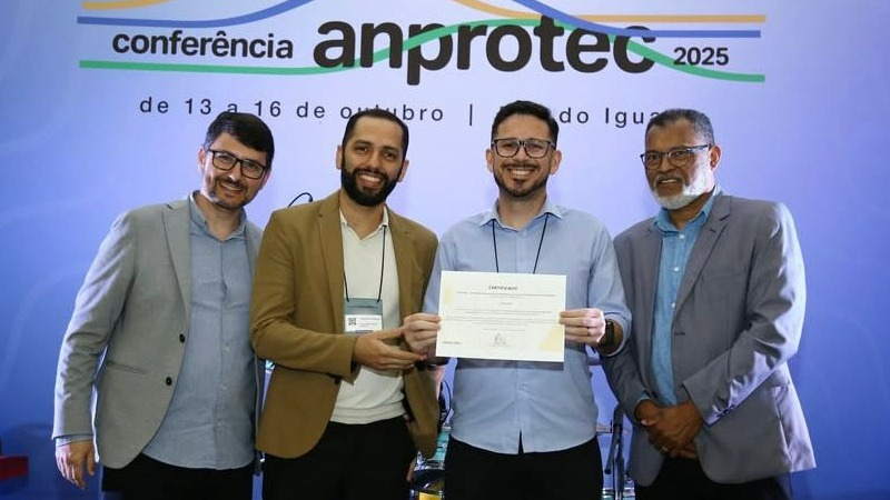 O reconhecimento foi entregue no jantar de encerramento da 35ª Conferência Anprotec, realizada no Paraná, com a presença do coordenador Rodrigo Batista, reunindo instituições de referência em inovação, parques tecnológicos, incubadoras e hubs de todo o país.