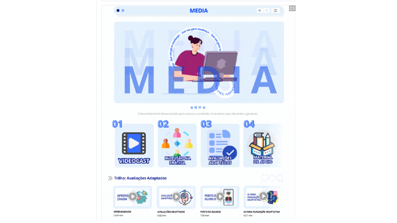 Inspirado em plataformas de streaming, o Bloco Media apresenta os materiais em videocasts, permitindo que cada docente identifique percursos possíveis de aprendizagem e acesse conteúdos a partir de suas demandas reais.