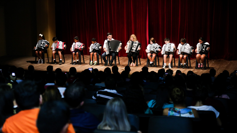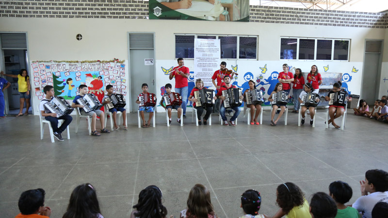 Valorizar as raízes locais no contexto educacional das crianças. Essa é a proposta da Orquestra Sanfônica Infantil, projeto desenvolvido desde 2014. Apadrinhada oficialmente pelo sanfoneiro Waldonys, a orquestra reúne crianças que estudam na Escola de Aplicação Yolanda Queiroz, projeto social da Fundação Edson Queiroz, e une o som clássico de instrumentos como violino e violoncelo ao som da sanfona, triângulo e zabumba.