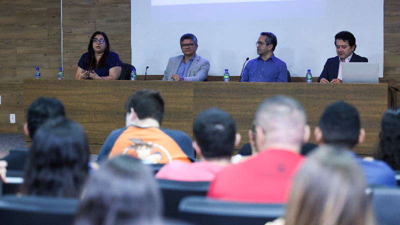 Neuri Freitas, diretor-presidente e diretor de Gestão Corporativa da Companhia de Água e Esgoto do Ceará — “Para mim é uma honra e uma satisfação estar aqui, voltar à Unifor, ter esse contato que tive durante anos, inclusive, na pós-graduação, voltei muito à Universidade para realizar consultas na Biblioteca e conversar com professores. E, mais uma vez, estou aqui de volta para passar aprendizados e contribuir com a discussão”.