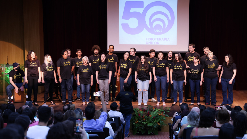 A cerimônia também contou apresentações do Coral Unifor e a entrega de placas aos convidados homenageados da noite — personalidades que fizeram parte da história do curso de Fisioterapia ao longo destes 50 anos, e contribuíram significativamente para a graduação expandir suas fronteiras e firmar seu legado na área da saúde. Como a egressa da 1ª turma do curso, a doutora Lila Pimentel, 87 anos. Para homenagear a data, ela entregou para a coordenação a foto da sua formatura onde pousa com os colegas de turma.
