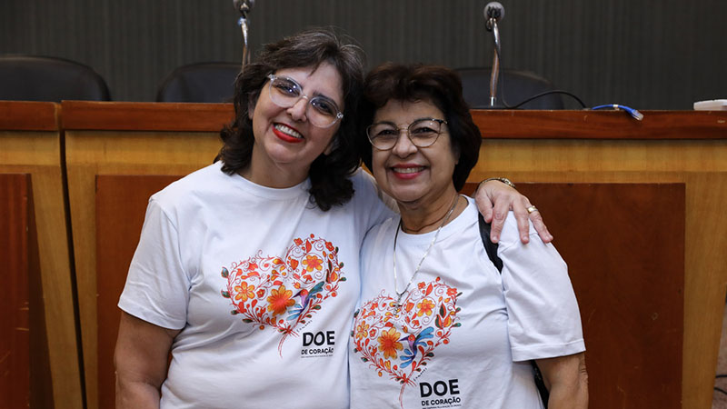 Palestrantes: Marina Alves (transplantada de medula óssea e embaixadora da Doe de Coração 2025) e Lumara Bezerra (irmã e doadora de Marina)