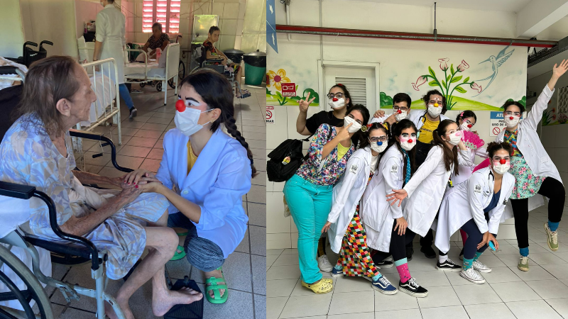 A aluna conta que, juntamente com os colegas, fez um curso de capacitação que os habilitou a visitar hospitais como palhaçoterapeutas. “Somos doutores-palhaços, especialistas em diminuir a dor e o estresse dos pacientes nos hospitais. Lidamos com um dos momentos mais sensíveis que o ser humano passa, então é levado bastante a sério”, enfatiza.
