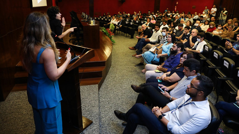 Operar equipamentos de natureza audiovisual na prática da oratória.