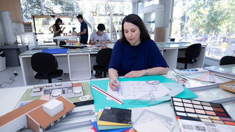 A graduação em Design de Interiores possui a matriz curricular fechada. O aluno deve cursar todas as disciplinas referentes ao semestre. O curso possui parcelas fixas durante todo o período, no valor de R$ 1.138,00* por mês.