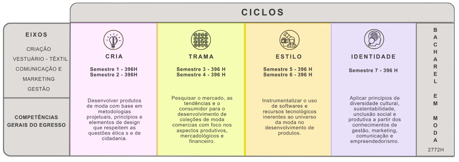 Ser bacharel para atuar nas diversas áreas que se inter-relacionam com o sistema da moda, com capacidade reflexiva e uma visão crítica e sistêmica do setor; competente para interpretar fatos políticos, sociais e culturais com o propósito de identificação de problemas e aplicação de metodologias para criação de soluções por meio de projetos e produtos.