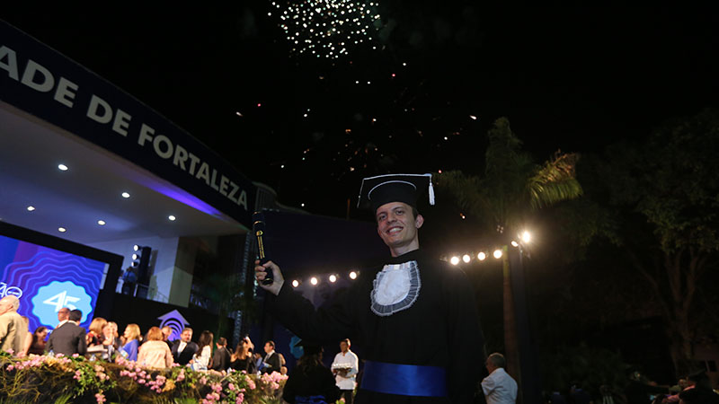 A Universidade de Fortaleza realizou, na noite do dia 5 de julho, a cerimônia de Colação de Grau do semestre 2018.1, na Praça Central do Campus. Na presença de familiares, professores e amigos, 1.532 formandos de 38 cursos de Graduação e Graduação Tecnológica realizaram o sonho acalentado desde que ingressaram na universidade.