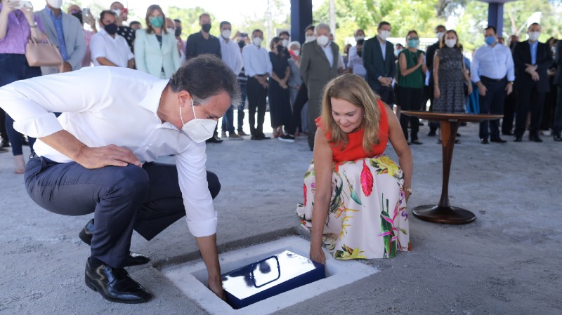 A presidente da Fundação Edson Queiroz, Lenise Queiroz Rocha, recebeu o governador, o prefeito José Sarto Nogueira e outras autoridades para o lançamento da Pedra Fundamental do equipamento