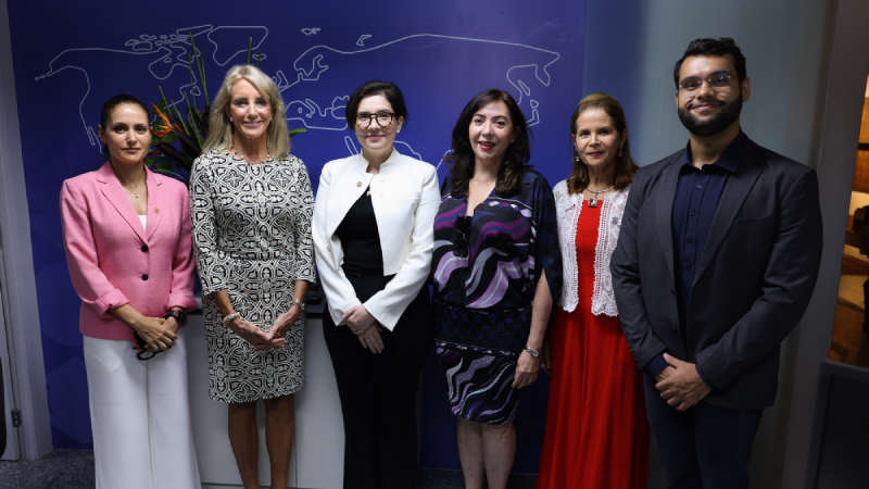 Elizabeth Frawley Bagley foi recebida pela presidente e pela vice-presidente da Fundação Edson Queiroz, pelos vice-reitores da Unifor, por representantes do Núcleo de Estudos Internacionais (NEI) e pelos gestores das áreas de responsabilidade social e arte e cultura da instituição