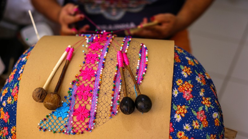 “Eu tive a oportunidade de trabalhar com a maravilhosa Maria Cleide, que foi a minha rendeira mentora, ela me ajudou muito a entender um pouco mais esse universo da renda, principalmente da renda de bilro, que foi o tipo de renda utilizada para fazer todos os produtos. Agradeço muito por todo o conhecimento que ela me passou. É uma experiência que vou levar para a minha vida, tanto pessoal, como profissional”, comemora a aluna Thaís Grangeiro.