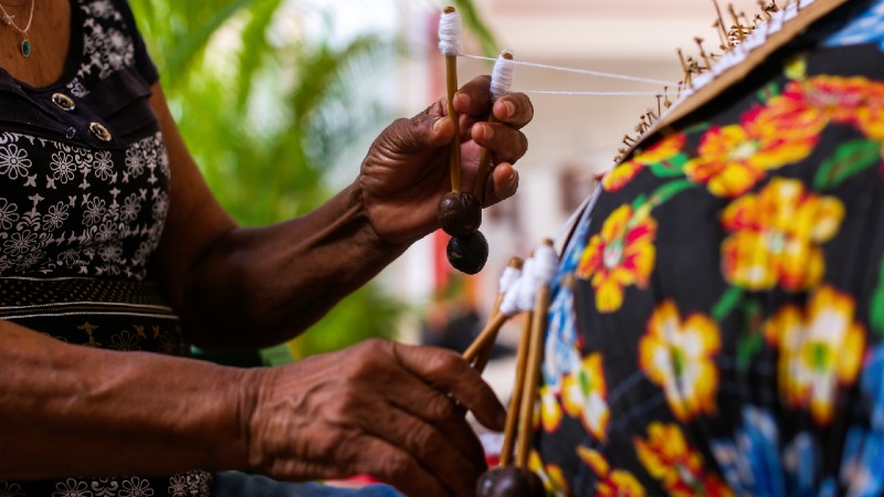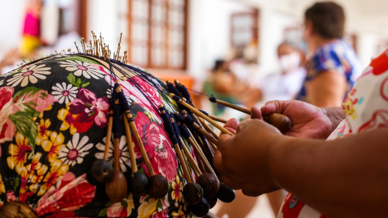 “É muito gratificante saber que houve uma troca de experiência entre o aluno e a rendeira, eles chegaram com uma bagagem e convivendo com a gente, isso enriqueceu”, reforça dona Eliane, rendeira da Prainha que também integra o projeto.