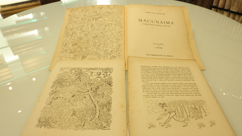 O raro exemplar da obra Macunaíma: o herói sem nenhum caráter, de Mário de Andrade, foi lançado em 1957 e pertence à coleção Ciccillo Matarazzo Sobrinho, que hoje reside na Biblioteca Acervos Especiais da Universidade de Fortaleza. O livro é a décima primeira publicação da Sociedade dos Cem Bibliófilos do Brasil e contém 42 águas-fortes (calcogravura - gravura feita usando uma matriz de metal) originais de Carybé.