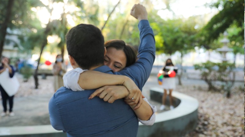“Há seis anos, eu conheci ela aqui na Unifor, e o nosso cantinho, onde a gente costumava ficar, era exatamente onde estou fazendo o pedido. Uma vez, entre as aulas, estávamos bem próximos daqui e eu falei que, assim que me formasse, ia pedir ela em casamento. Nem era namorado dela ainda, falei brincando. Algum tempo depois, começamos a namorar, e eu mantive a promessa, mesmo sem ela lembrar”, explicou Adriel, minutos antes de fazer a proposta à Sawana. Ele concluiu os estudos em Psicologia no dia 24 de julho, durante a cerimônia online de Colação de Grau realizada pela instituição.