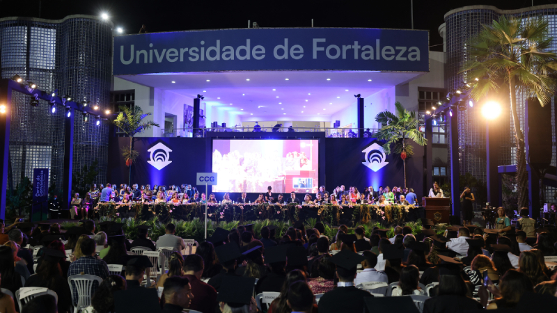 Na noite desta sexta-feira (8), a Universidade de Fortaleza — mantida pela Fundação Edson Queiroz —, abriu as suas portas para celebrar a Colação de Grau do semestre 2023.1. A instituição reuniu na Praça Central do Campus mais de 1.200 concludentes, entre alunos da graduação e pós-graduação. Também estiveram presentes convidados, docentes e autoridades.