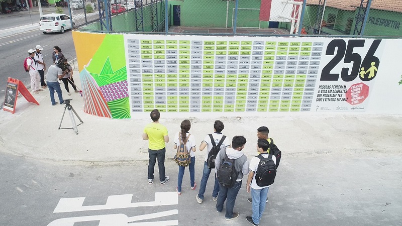 Como parte da programação do calendário mundial da Organização das Nações Unidas (ONU) a Prefeitura de Fortaleza se juntou a dezenas de instituições ao redor do globo que no dia 19 de novembro chamaram atenção para o grande número de vítimas de acidentes de trânsito. Nesta edição, o tributo ganhou forma de arte no muro da Escola de Ensino Fundamental e Médio Governador Flávio Marcílio, no cruzamento das Avenidas Pasteur e Presidente Castelo Branco (Leste Oeste), onde um coletivo de artistas urbanos deixou uma mensagem de esperança, mas também de apelo por um comportamento mais seguro de motoristas e motociclistas. O evento tem o apoio da Iniciativa Bloomberg de Segurança Viária Global.